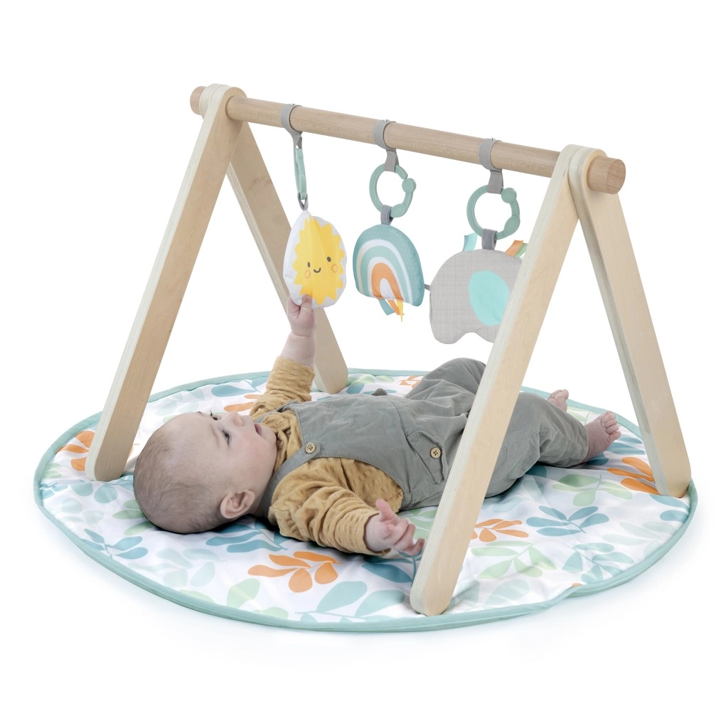 Crea per il tuo bebé una zona tranquilla per il gioco e il relax. L’arco in legno con struttura ad A garantisce stabilità, mentre il tappetino rotondo e morbidamente imbottito con motivo foglia offre comfort sia per giocare supini sia per il tummy time. I giochi rimovibili con anelli si spostano facilmente per mantenere il gioco sempre stimolante.