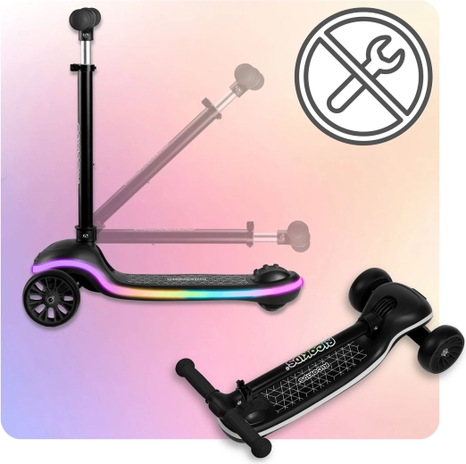 La piattaforma illuminata offre effetti monocromatici e multicolori con transizioni fluide. Il bambino è più visibile e ogni corsa è più attraente, soprattutto al crepuscolo e dopo il buio.