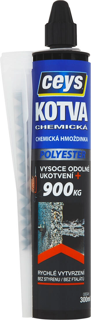 Ancorante chimico CEYS bicomponente universale per un fissaggio affidabile su supporti cavi e pieni, come mattoni, calcestruzzo, pietra o legno. Indurisce rapidamente in 6 minuti, senza espansione ed è senza stirene, ideale per montaggi vicino ai bordi e a superfici sensibili. L’elevata resistenza al carico di 900 kg/cm² assicura un fissaggio solido di viti, perni e strutture sia in interno che in esterno.