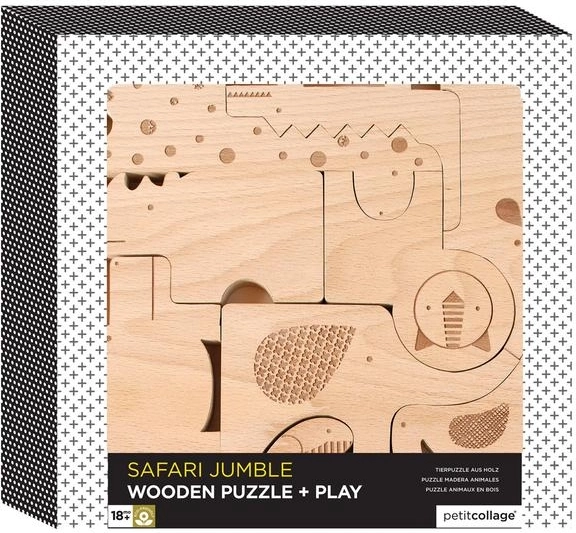 I puzzle di animali Safari in legno di PETIT COLLAGE entusiasmeranno i bambini in ogni fase dello sviluppo. I piccoli esploratori possono inserire i pezzi nella cornice in legno oppure impilarli liberamente – un gioco che sviluppa non solo motricità e coordinazione occhio–mano, ma anche creatività e pazienza.