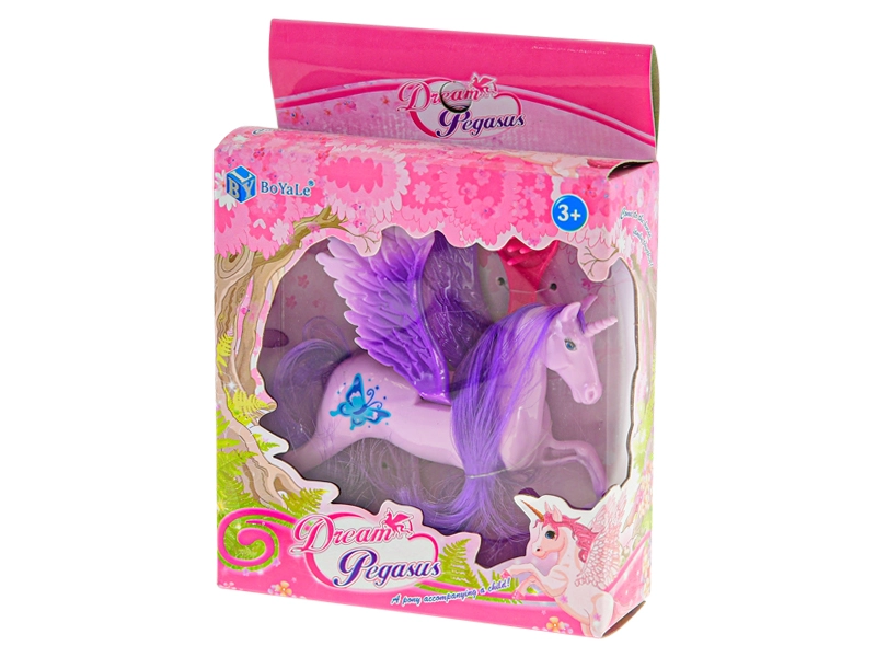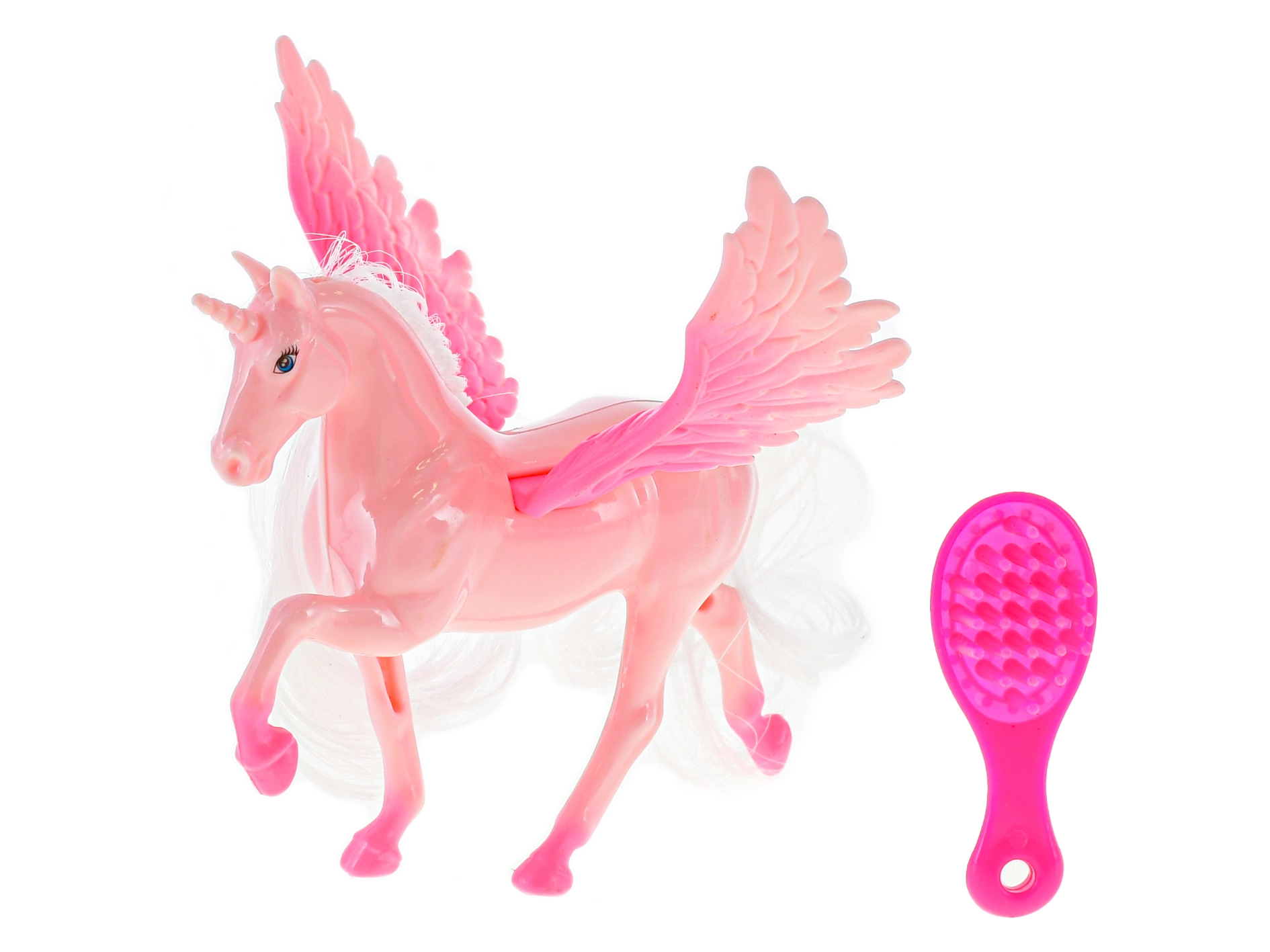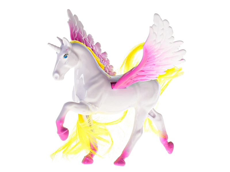 L’incantevole unicorno con ali farà felici tutti i piccoli amanti del fantastico. Il giocattolo ha una lunga criniera colorata, pettinabile con il pettine incluso, e un supporto stabile e mobile per giocare e mettere in mostra con facilità. La plastica resistente garantisce lunga durata e uso sicuro.