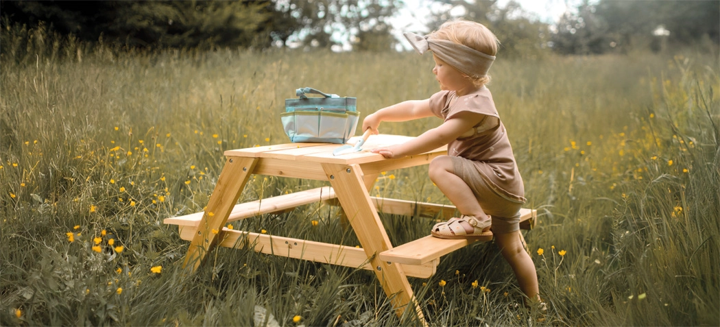 Regala ai bambini uno spazio tutto loro per giocare, creare e i primi picnic. Il tavolo da picnic per bambini small foot in resistente legno massello si distingue per l’aspetto naturale, la solida struttura ad A e le panche integrate su entrambi i lati. I bordi arrotondati e la comoda altezza della seduta favoriscono una seduta sicura ed ergonomica.