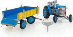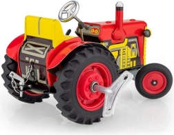 Classico giocattolo in latta per piccoli e grandi appassionati di macchine agricole: trattore Zetor con rimorchio a sponde staccabile con meccanismo a molla a chiavetta. Offre 3 velocità (avanti, folle, retro), sterzo funzionante con volante e freno a mano. Precisa lavorazione artigianale ceca, certificato Giocattolo Sicuro e struttura resistente in latta stampata con ruote in plastica.