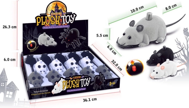 Divertente topo a rotelle lungo 10 cm che entusiasmerà bambini e amanti degli animali. Facile da controllare con il pulsante sulla schiena, dimensioni compatte 10 × 6 × 8 cm e tre colori di tendenza: nero, grigio e bianco.