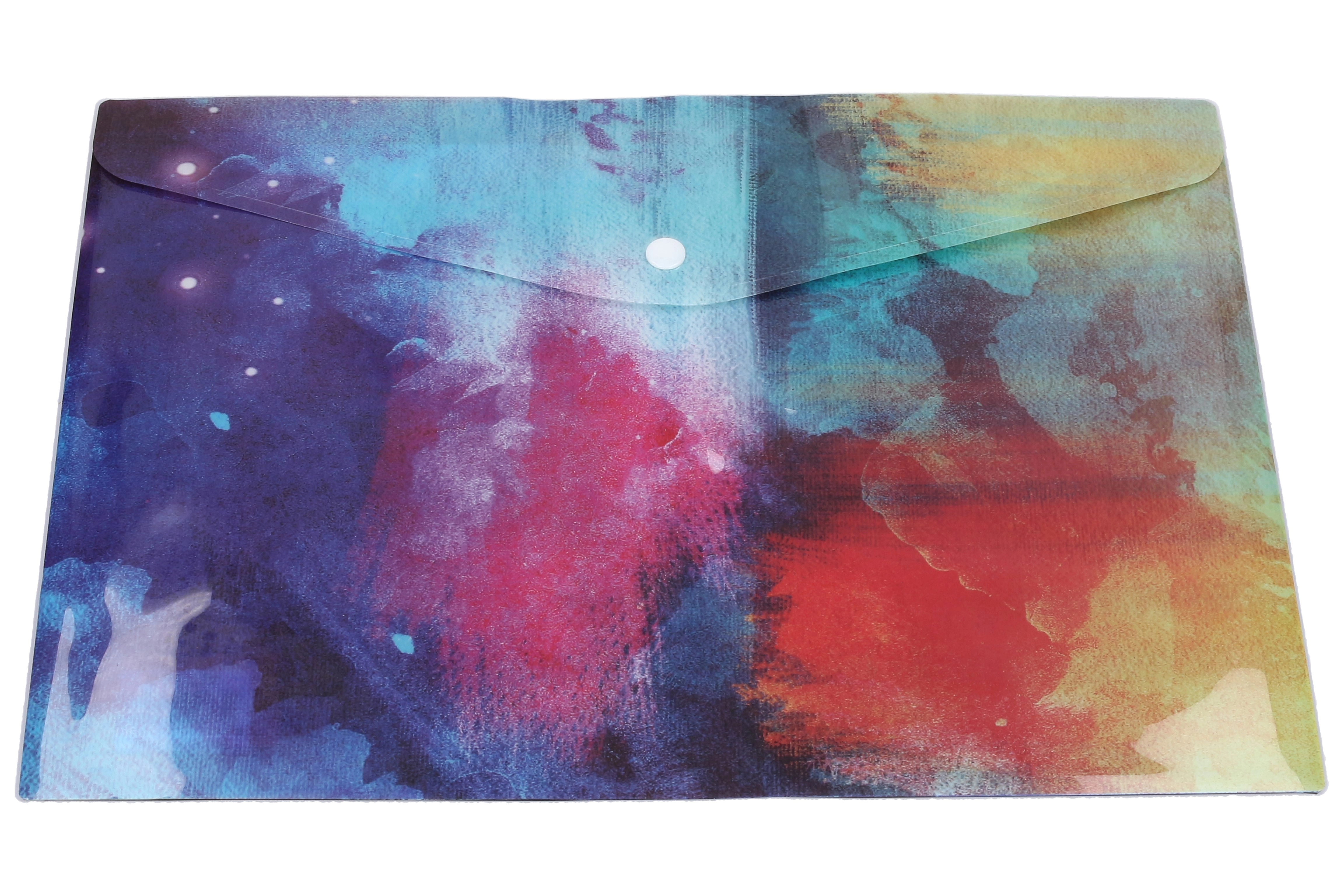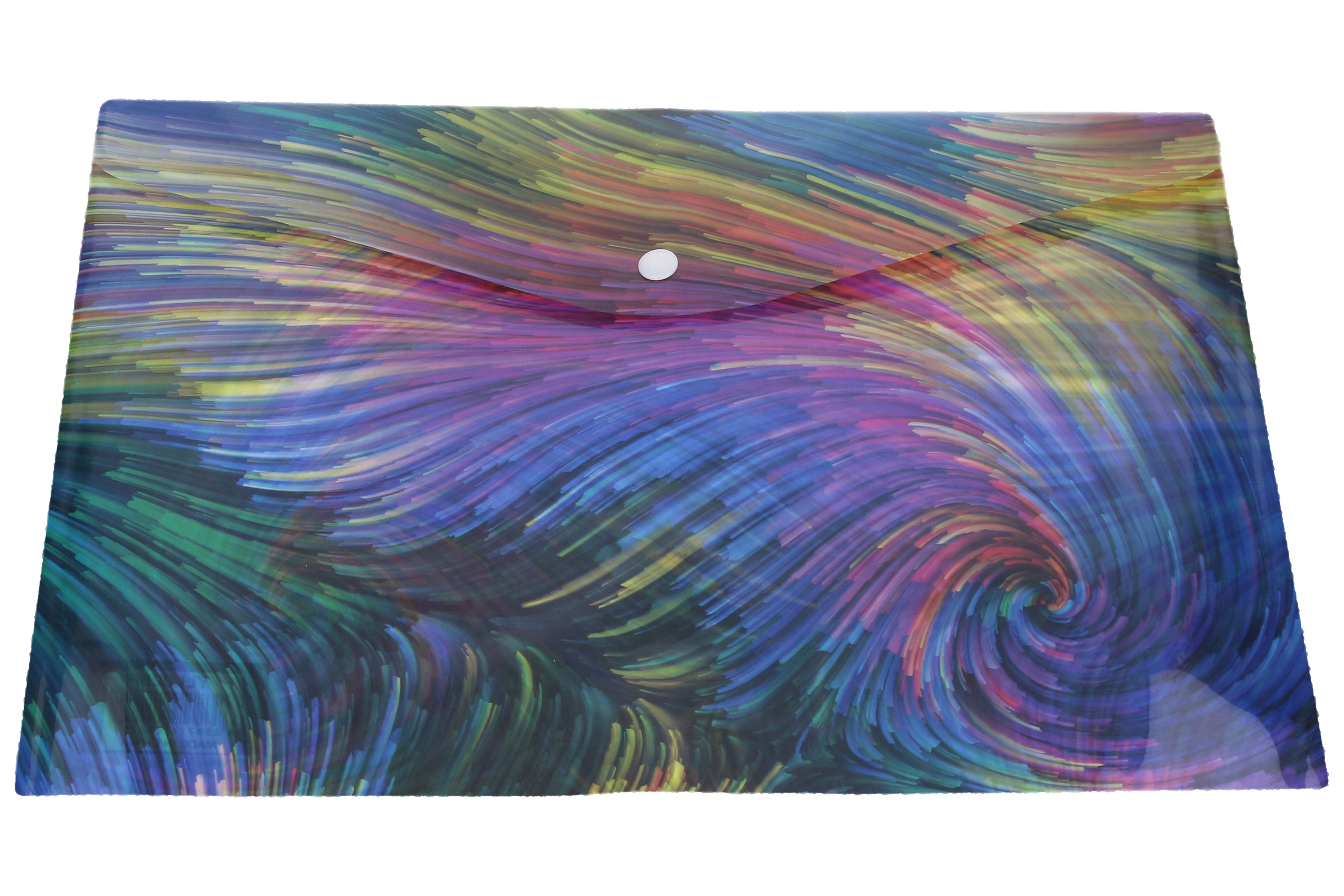 Cartellina compatta in plastica con pratico bottone a pressione per riporre in sicurezza piccoli documenti, scontrini e carte. Grazie al formato 16,5 × 12 cm entra in qualsiasi borsa o zaino e protegge il contenuto da polvere e umidità. Disponibile in un mix di moderni motivi colorati in 4 varianti e con chiusura a pressione affidabile per un’apertura e chiusura rapide.