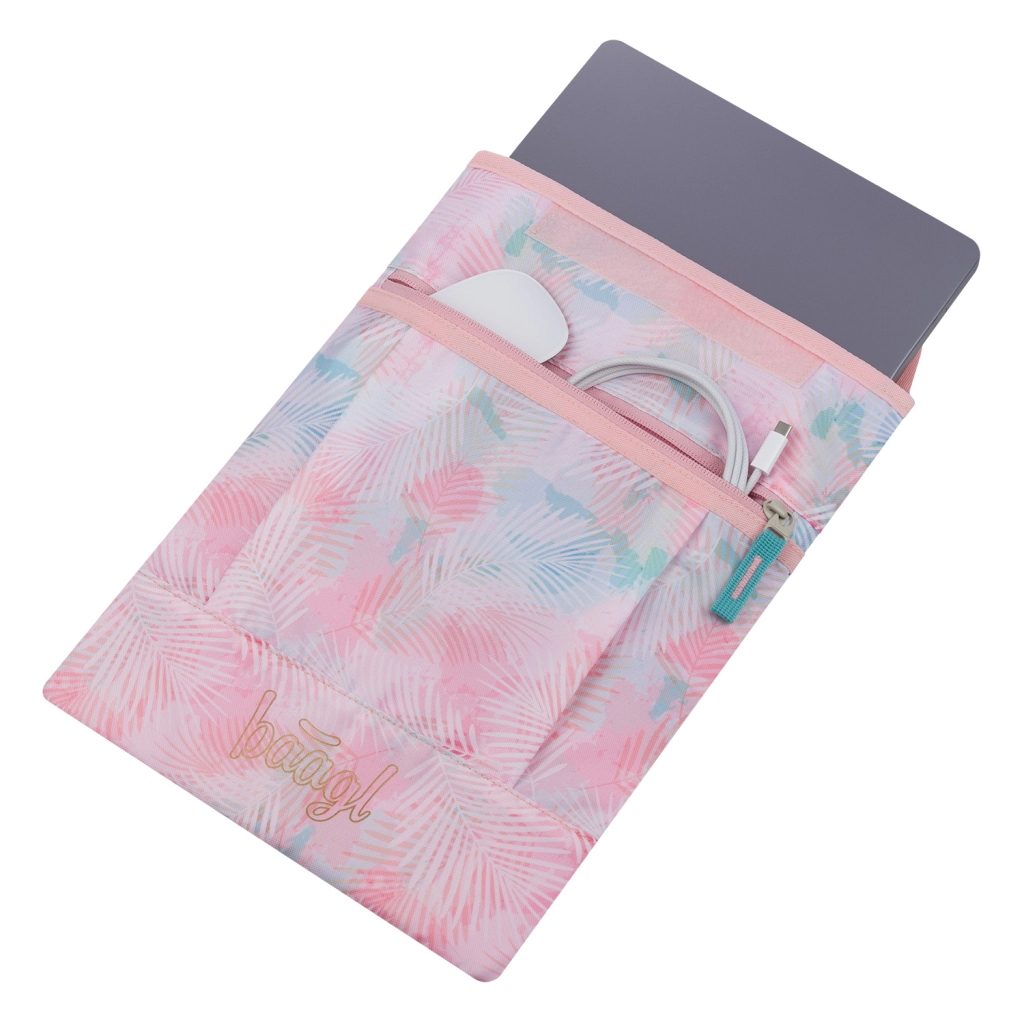 La tasca frontale con cerniera YKK di alta qualità contiene caricatore, mouse e cavi, così hai sempre gli accessori a portata di mano. Il design in tonalità pastello si abbina facilmente ad altri accessori BAAGL.