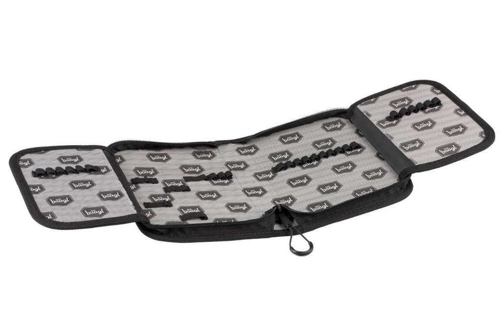 - 3 scomparti separati, organizer interno, elastico di fissaggio, tasca trasparente con orario