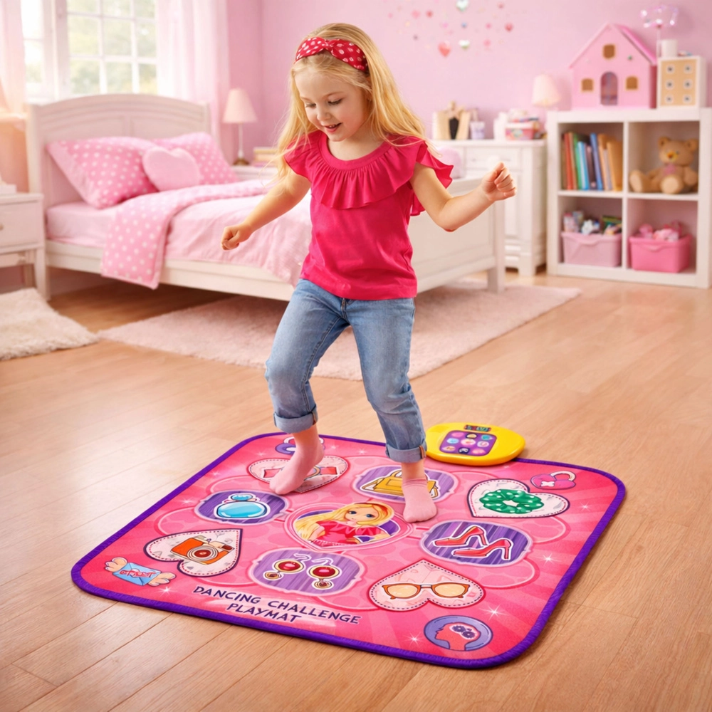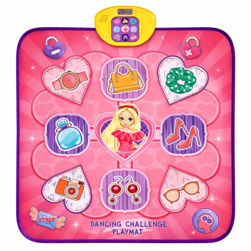 Scegli tra 5 modalità: danza libera, modalità 4 e 6 tasti, modalità memoria e batteria elettronica. Tre livelli di difficoltà mantengono il divertimento per bambini, adolescenti e adulti. Il display del punteggio aggiunge spirito competitivo, il volume regolabile garantisce un uso confortevole.