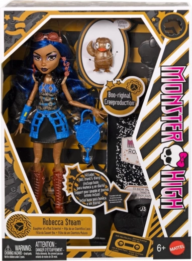 La protagonista amata di MONSTER HIGH ritorna nella riedizione Creeproduction, che onora la prima generazione originale. Robecca colpisce per il tono di pelle bronzo, il trucco deciso e i capelli nero-blu. Il suo outfit con motivi di ingranaggi, gonna dai toni metallici, alti stivali “a razzo” e occhiali in rame è l'essenza dello stile steampunk.