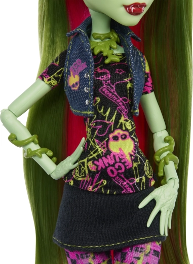 L’iconica bambola MONSTER HIGH torna nella linea CreeproductionVenus McFlytrap nel classico stile vegetale, con 11 articolazioni per le pose e tanti accessori. Non manca il suo dolce compagno Chewlian, il supporto e il pettine, che rendono la bambola perfetta per gioco e esposizione da collezione.