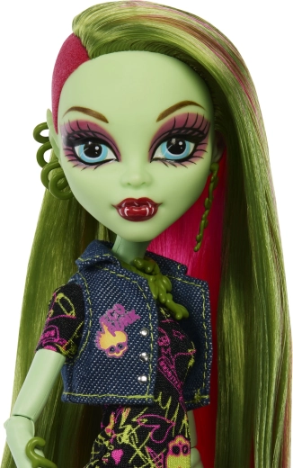 Venus McFlytrap colpisce con motivi botanici decisi, capelli rosa‑verdi e gioielli ricchi di dettagli. La struttura flessibile con 11 punti di articolazione permette pose realistiche e un racconto creativo di storie dal mondo MONSTER HIGH. Nella confezione trovi anche il fidato animaletto Chewlian, che dona al set un valore da collezione.
