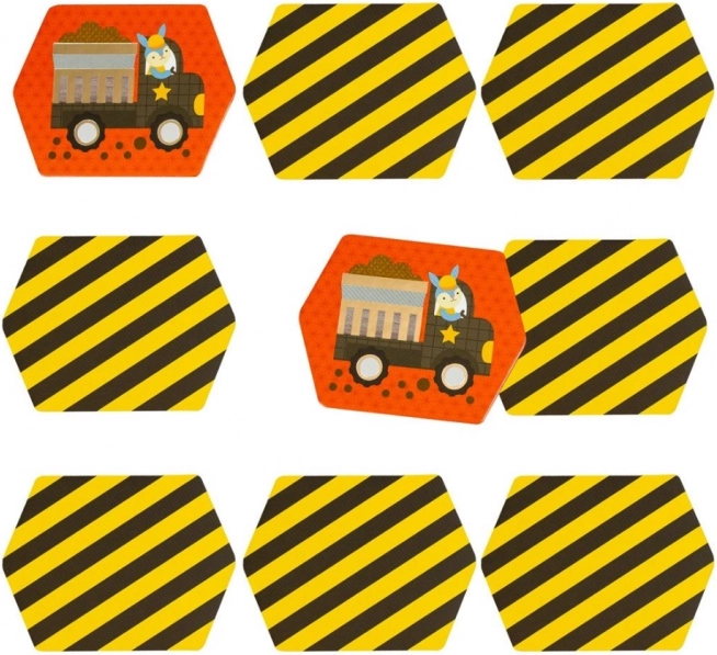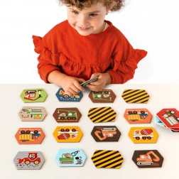 Diverse illustrazioni di veicoli su carte esagonali aiutano i bambini non solo a migliorare la memoria, ma anche a supportare le capacità cognitive mantenendo il gioco.