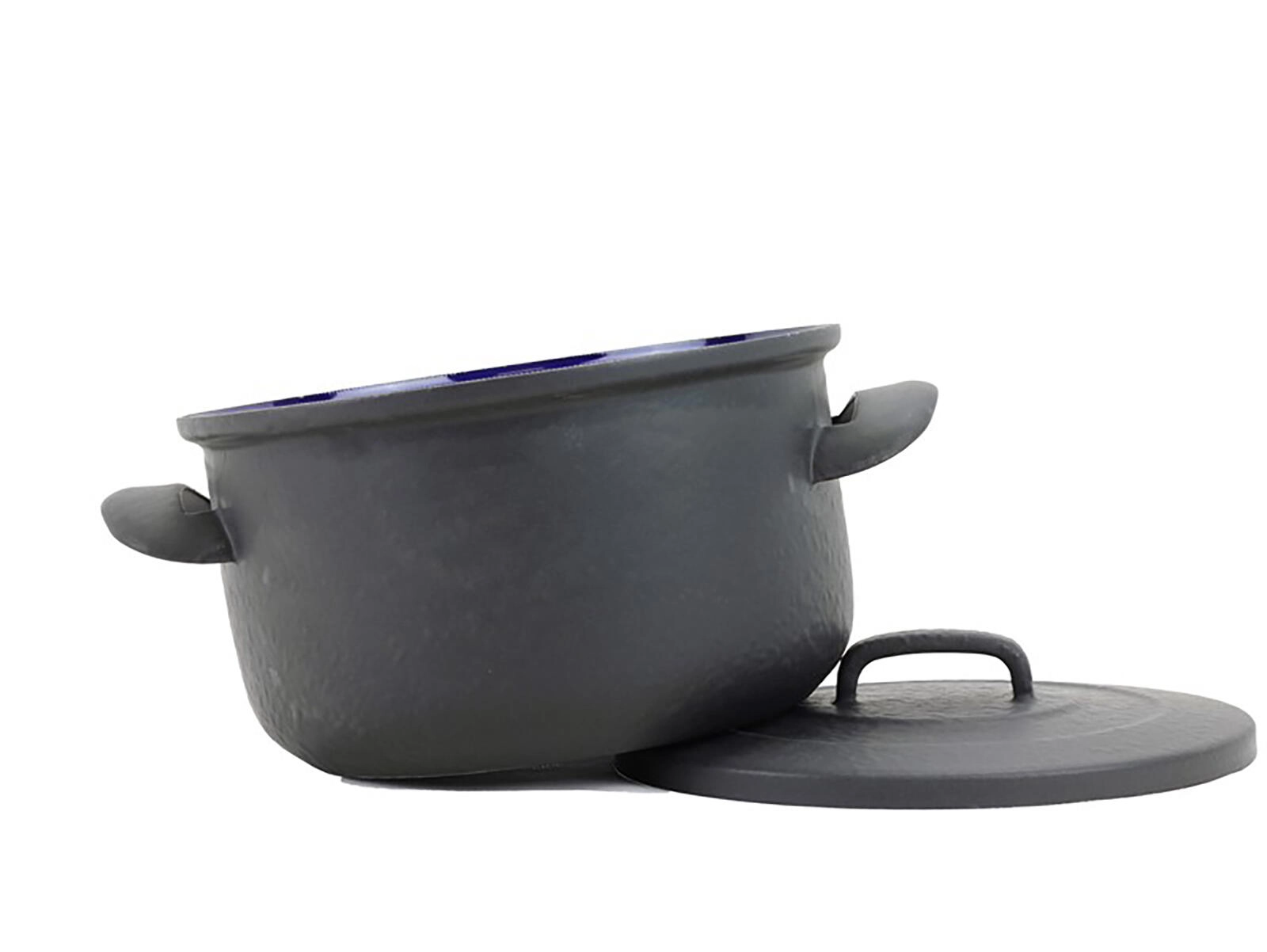 Pentola smaltata di qualità con capacità di 5 litri e diametro di 24 cm, caratterizzata da una robusta struttura in lamiera da 2 mm, texture esterna applicata a mano e resistente smalto interno blu. Offre cottura sana, ottima distribuzione del calore, è adatta all’induzione e a tutti gli altri tipi di piani cottura e si può lavare in lavastoviglie.