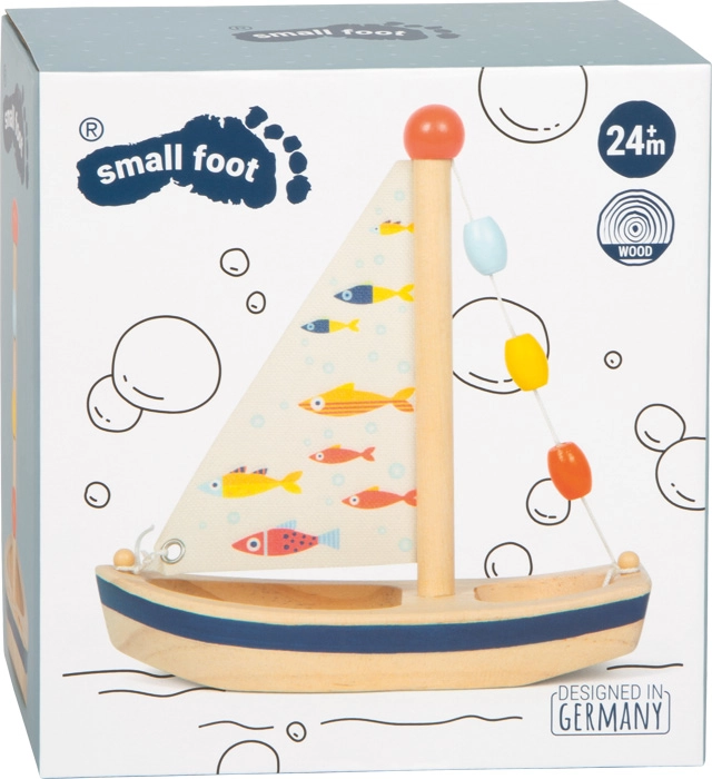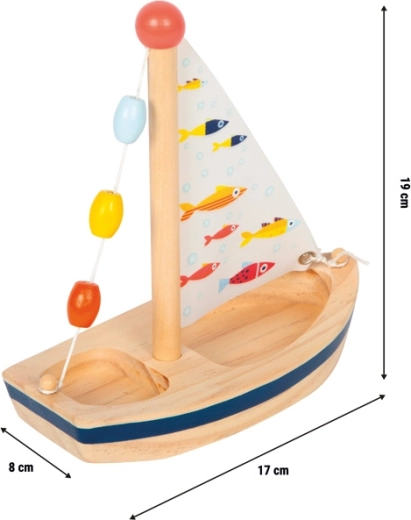 Questa elegante barca a vela in legno porta un tocco di fantasia in ogni bagnetto e nei giochi d’acqua estivi. Il legno naturale è abbinato a una vela in tessuto stampato con pesci allegri e a perline colorate sull’albero, che catturano l’attenzione dei bambini e stimolano la percezione sensoriale. Il giocattolo è leggero, si impugna bene dalle manine e, dopo il divertimento in acqua, basta semplicemente asciugarlo per prepararlo a una nuova navigazione.