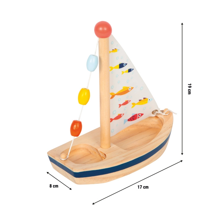 Leggera barchetta in legno con vela in tessuto, ideale per giochi d’acqua in vasca e in piscina. Stimola la fantasia e il gioco autonomo.