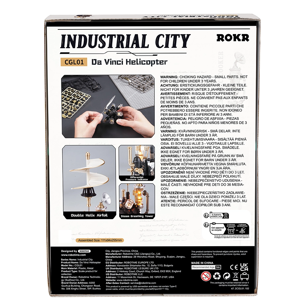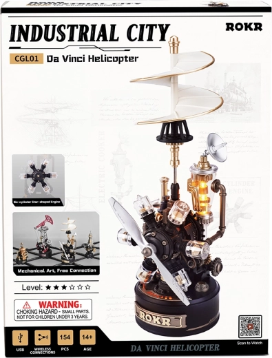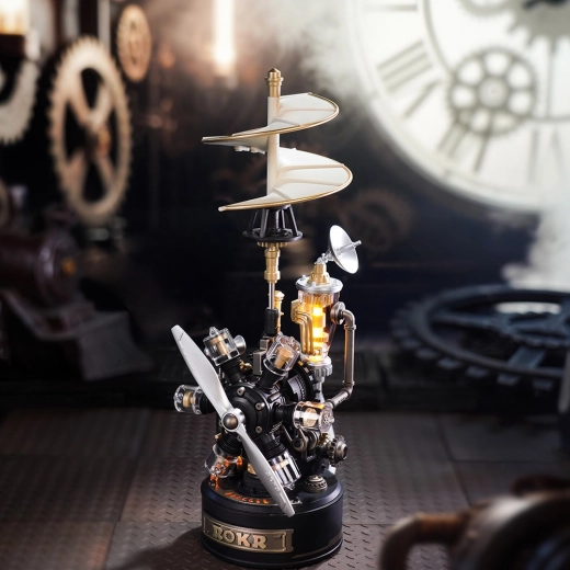 Questo puzzle 3D meccanico in stile rinascimento steampunk offre uno sguardo unico sul mondo delle prime visioni aeronautiche. Dopo il montaggio, si mettono in movimento eliche e ingranaggi, mentre l’illuminazione LED e l’effetto “vapore” donano al modello un carattere vivo e realistico. Grazie alle istruzioni intuitive e ai pezzi numerati, la costruzione è piacevole sia per i principianti abili sia per i modellisti esperti.
