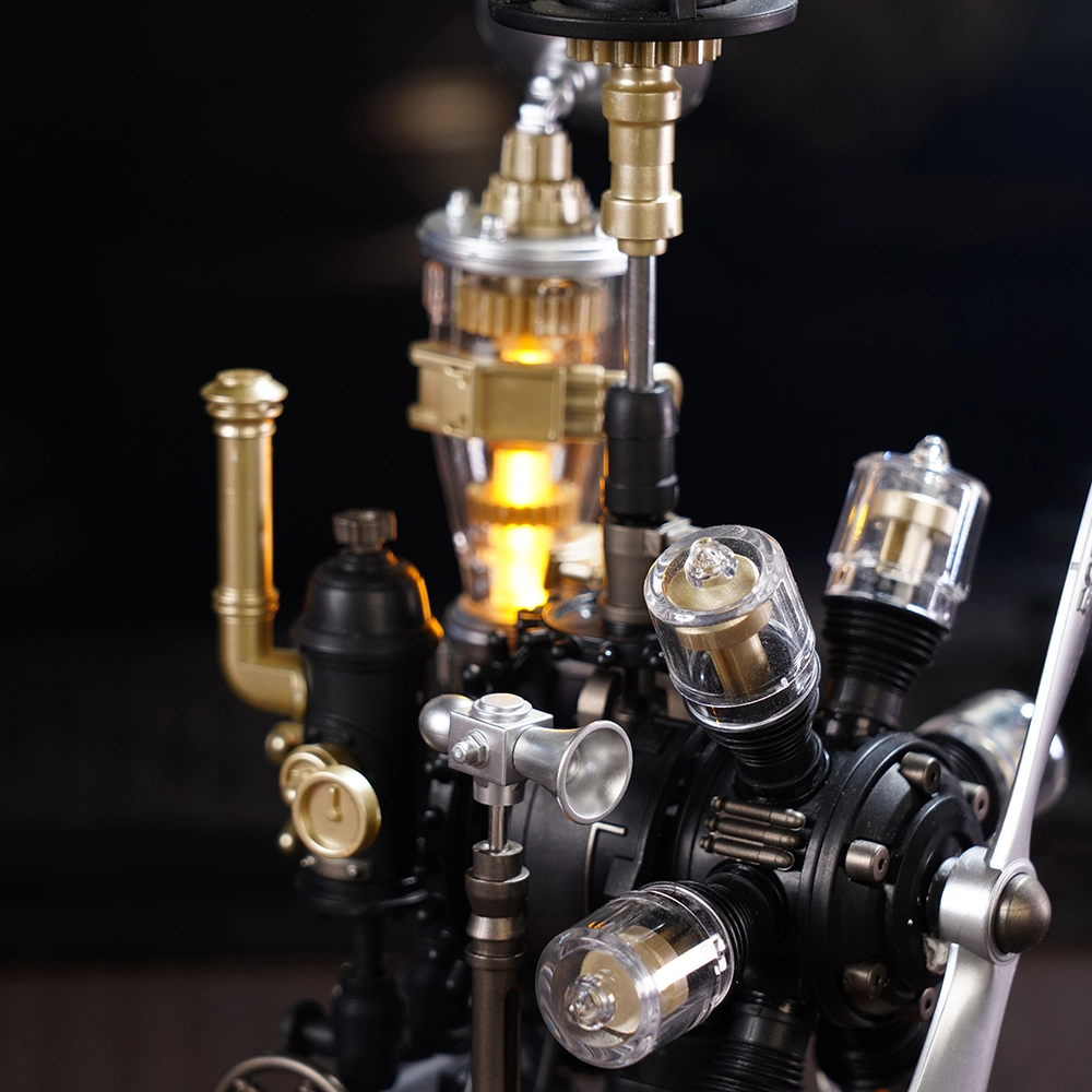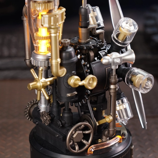 La luce LED integrata e la simulazione del vapore amplificano l’atmosfera steampunk. Il modello diventa una decorazione d’effetto sia a casa che in ufficio.