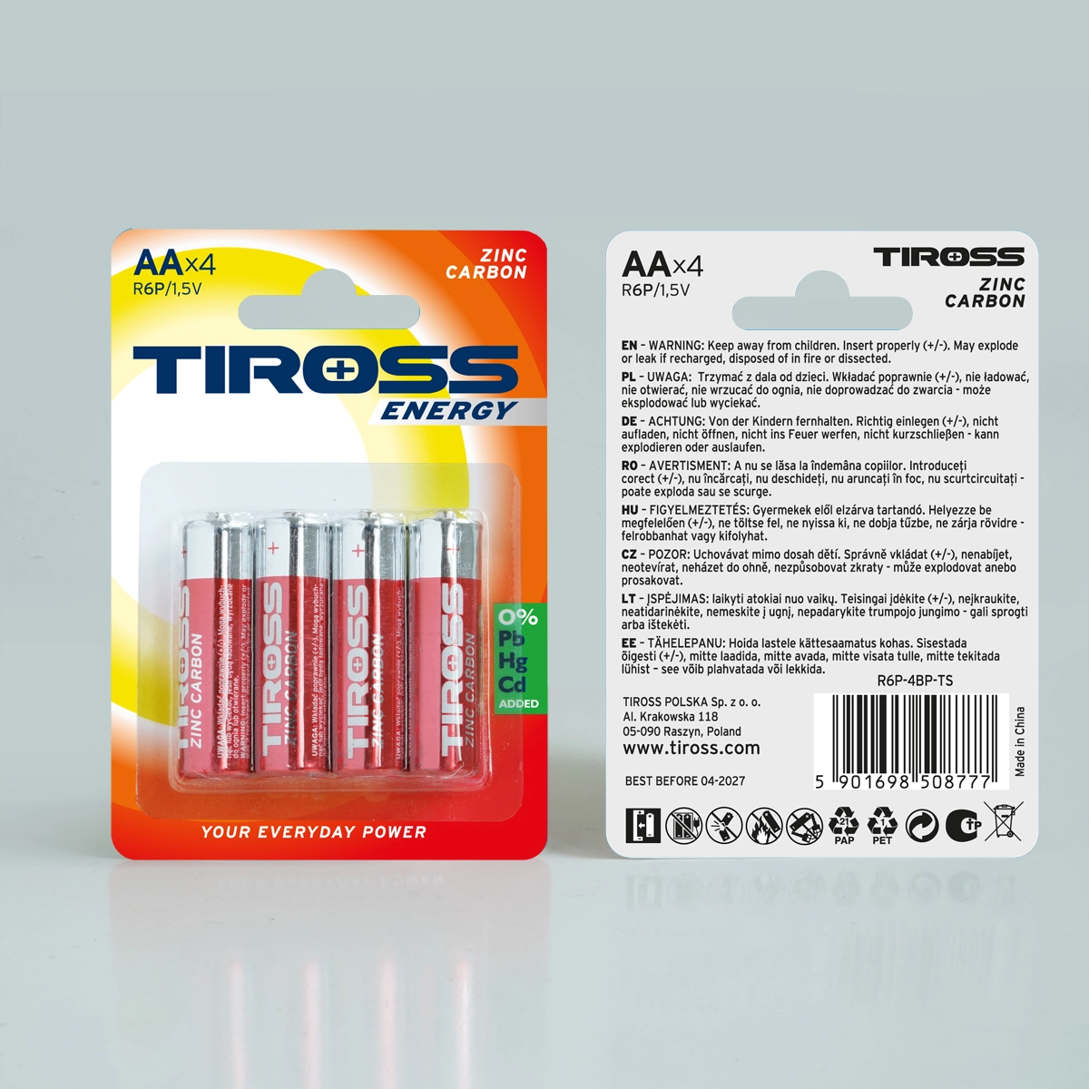 Affidabili batterie AA 1,5 V al zinco-carbone per l’uso quotidiano in dispositivi meno esigenti. La pratica confezione da 4 pezzi garantisce energia sufficiente per telecomandi, sveglie o giocattoli a un ottimo prezzo.