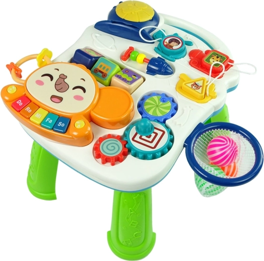 Il pannello educativo sviluppa la motricità fine, la coordinazione occhio–mano e la percezione di colori e forme. I bambini apprezzeranno le attività musicali, l’inserimento delle forme e i primi tentativi di tiro al canestro. Tutti gli elementi sono progettati per motivare all’esplorazione e sostenere lo sviluppo naturale del bambino.