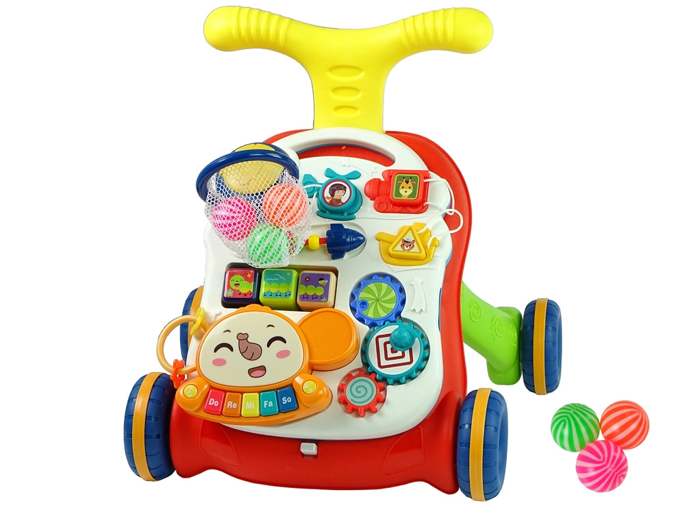- Girello 2 in 1, pannello rimovibile, palline, forme, ingranaggi, cubi girevoli