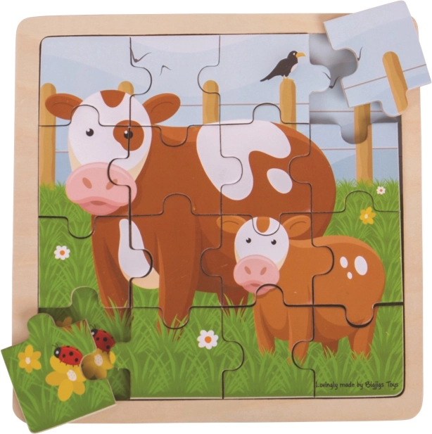 Bigjigs Toys puzzle in legno mucca con vitellino – 16 pezzi