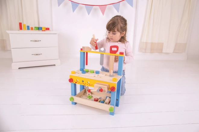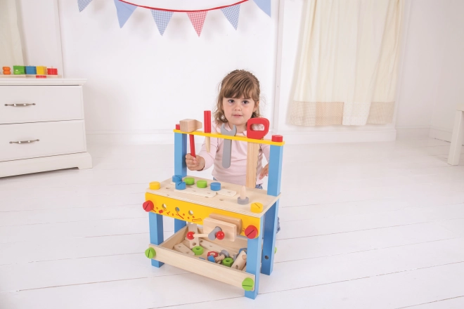 Questo colorato banco da lavoro in legno BIGJIGS TOYS è un ottimo inizio nel mondo degli attrezzi. Grazie agli elementi realistici e agli attrezzi in legno sicuri, i bambini esercitano abilità pratiche e apprendono i principi di base dell’uso degli utensili in modo ludico e sicuro.