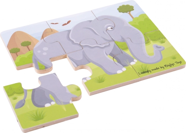 Il set include 3 puzzle con motivi di leone, zebra ed elefante – ideali per un apprendimento progressivo e un gioco più vario.