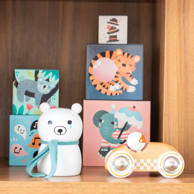 I bambini imparano abilità di base come impilare, contare e riconoscere animali e colori.