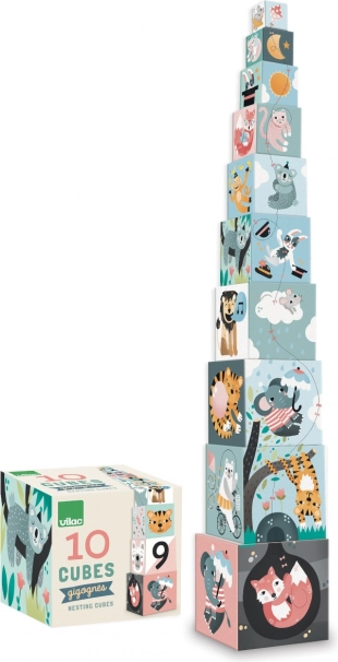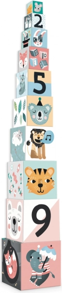 Presentiamo un puzzle che combina divertimento e apprendimento in un unico set colorato. Questo set comprende dieci cubi di cartone decorati con splendide illustrazioni di animali e numeri creati da Michelle Carlslund.