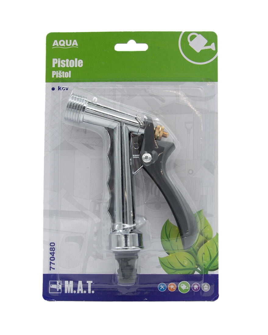La pistola in metallo AQUA è progettata per l'uso quotidiano in giardino. La struttura in metallo garantisce un'elevata resistenza all'usura e ai danni meccanici, mentre la forma ergonomica facilita una presa confortevole anche durante lavori prolungati.