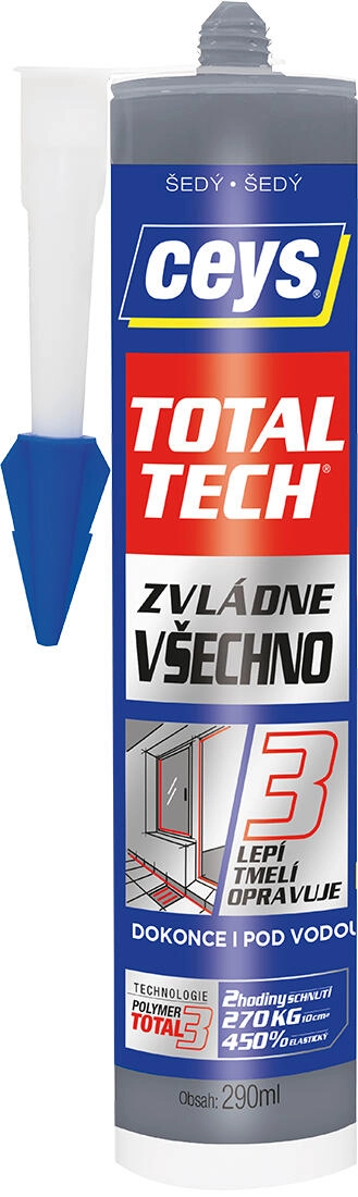 CEYS TOTAL TECH è un sigillante e adesivo ibrido da costruzione di nuova generazione, in grado di gestire montaggi, incollaggi e sigillature nelle condizioni più impegnative. Grazie alla composizione ultraelastica (fino al 420%) resiste a fessurazioni, vibrazioni e urti, rimanendo permanentemente elastico. Crea giunzioni impermeabili, robuste e durevoli, resistenti ai raggi UV, alla muffa e a temperature estreme.