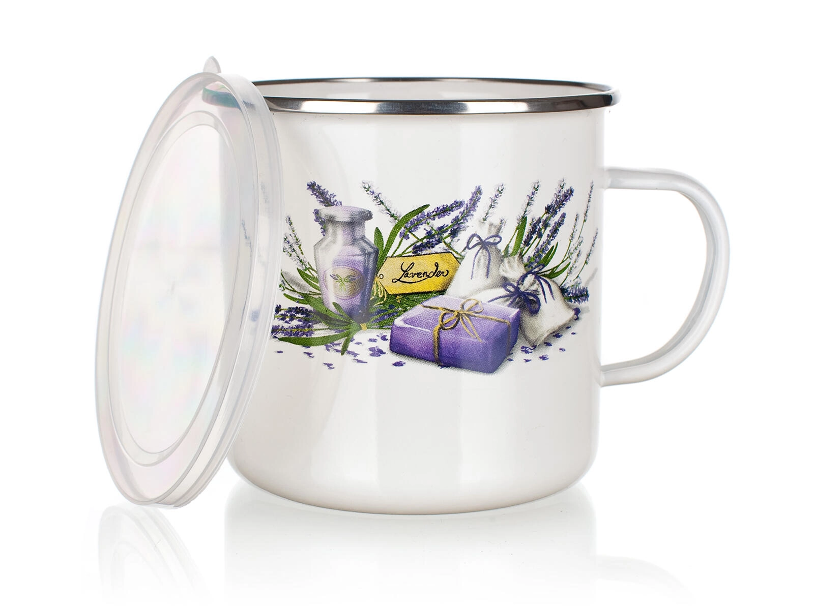 Scopri la pratica e stilosa tazza smaltata con delicato motivo floreale Lavender. Con una capacità di 0,7 l è perfetta per il caffè del mattino, il tè o le tisane. Il coperchio in plastica aiuta a mantenere la bevanda calda più a lungo e protegge da schizzi indesiderati.