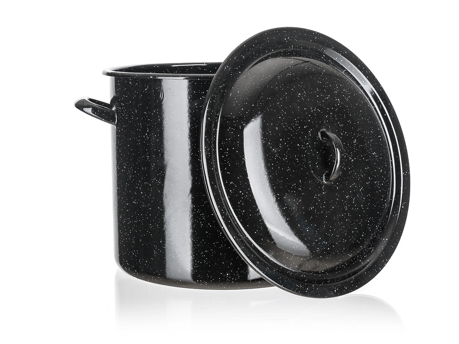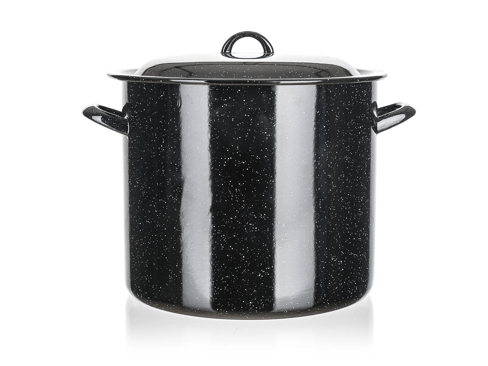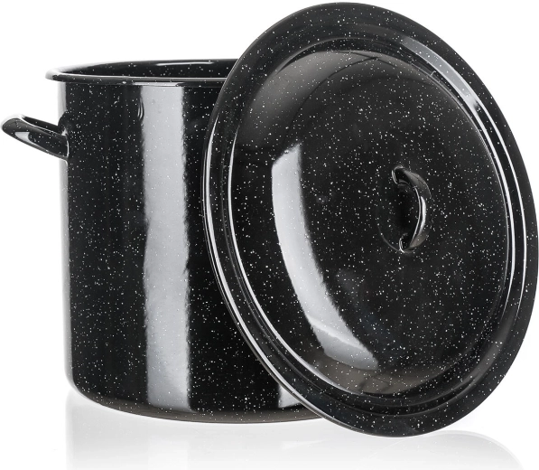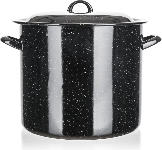 Pratica pentola smaltata con coperchio dalla capacità di 7,5 l e diametro di 24 cm, ideale per cucinare zuppe, salse e porzioni più grandi. La superficie smaltata resistente è facile da pulire, le maniglie robuste garantiscono una presa sicura e il coperchio sagomato aiuta a trattenere calore e umidità. Adatta a tutti i piani cottura tranne induzione.