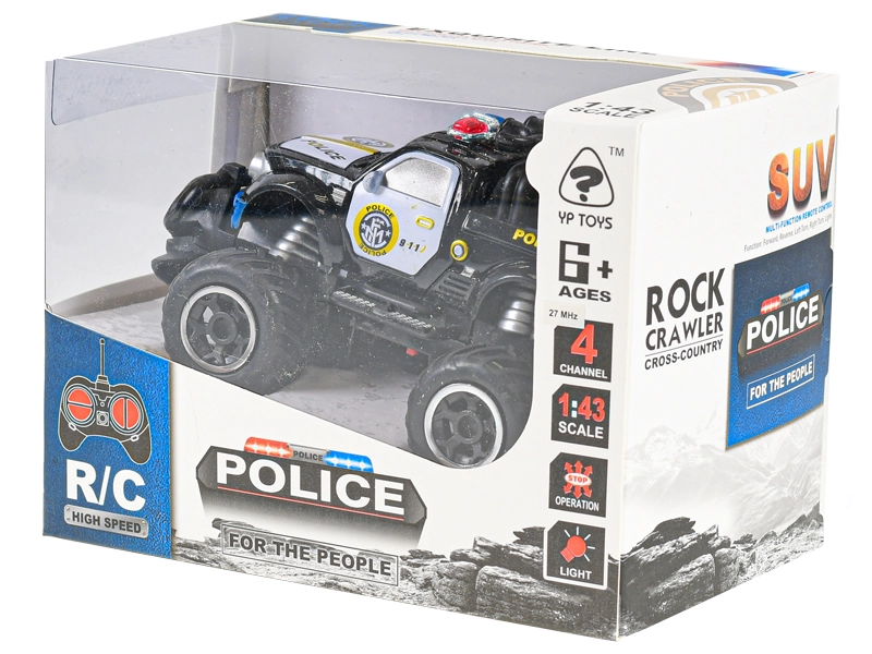 Questo compatto fuoristrada della polizia R/C porta ai bambini divertimento e il brivido dell’inseguimento. Grazie agli effetti luminosi e al controllo affidabile a 27 MHz è adatto sia per il gioco in casa che all’aperto. Un regalo ideale per i piccoli piloti che amano l’azione e la polizia.