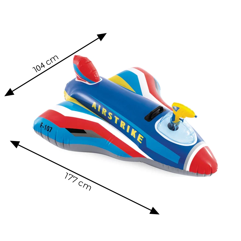 Vivi un’estate piena di azione con l’aereo gonfiabile INTEX per bambini! Grazie alla pistola ad acqua integrata, alle maniglie di stabilizzazione, alla base larga e a due camere d’aria, offre una guida sicura e divertente sull’acqua. Ideale per piscina, lago e vacanze, per bambini dai 3 anni con portata fino a 40 kg.
