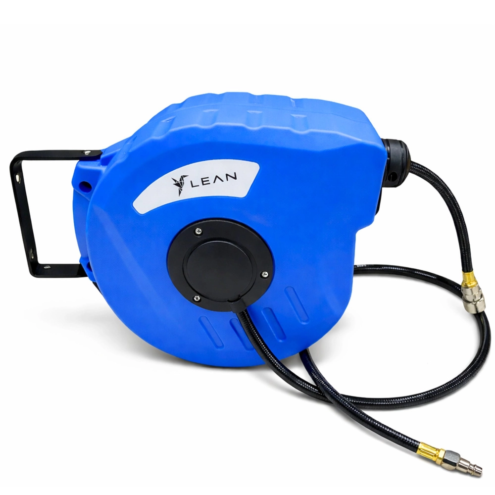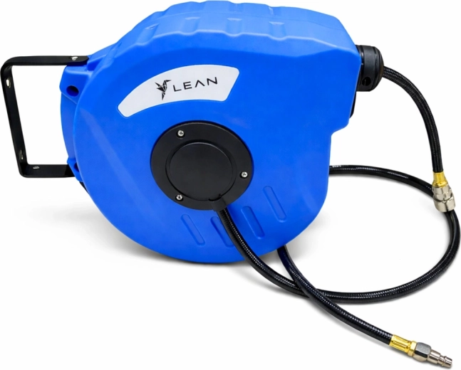 Il meccanismo integrato svolge il tubo in modo fluido e lo riavvolge in sicurezza. Evita grovigli, fa risparmiare tempo e mantiene l’area pulita durante il lavoro.
