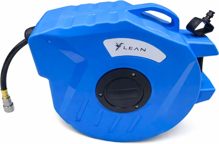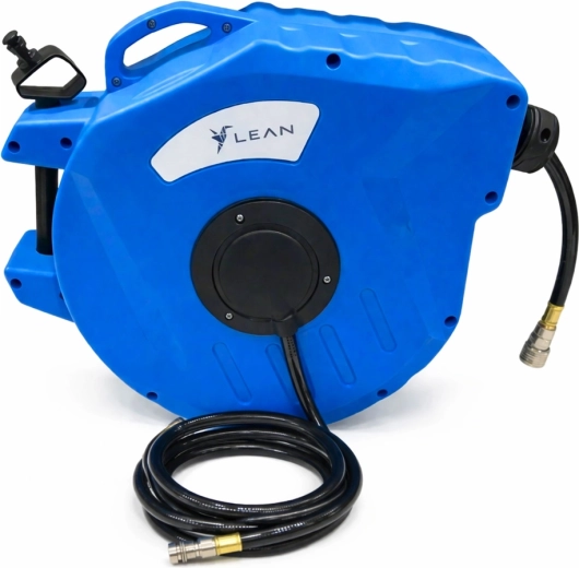 Mantenete l'area di lavoro in ordine e risparmiate tempo con l'avvolgitore automatico. La robusta custodia in plastica protegge il meccanismo, il sistema di guida assicura uno svolgimento e un avvolgimento fluidi e il supporto girevole facilita il lavoro in diverse direzioni. Il tubo in PVC flessibile è adatto a compressori e utensili pneumatici.