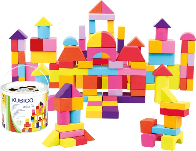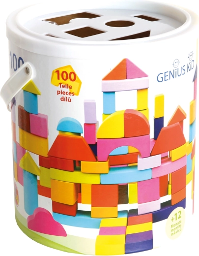 Questo ricco set di blocchi in legno in nuovi colori offre ai bambini infinite possibilità di costruire torri, ponti e semplici strutture. La pratica confezione in secchiello di cartone facilita il riordino e il trasporto, mentre il coperchio con fori funziona come inseritore per esercitare logica e pazienza.