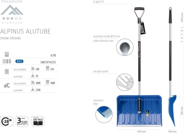 Pratica pala da neve per uno sgombero rapido e confortevole. Grazie alle dimensioni 55 × 38 cm offre un ampio raggio d’azione, un manico ergonomico e termico per una presa comoda e una pala in plastica resistente adatta anche alla neve ghiacciata.