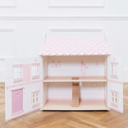 Incantevole casa delle bambole in legno LE TOY VAN Sophie della collezione premium Daisylane, offre tre piani di gioco, finestre e persiane apribili con motivo floreale e dettagli pastello dipinti a mano. Realizzata in legno FSC, verniciata con colori atossici a base d’acqua e completamente senza plastica – un regalo bellissimo, resistente e sostenibile che stimola il gioco di immaginazione.