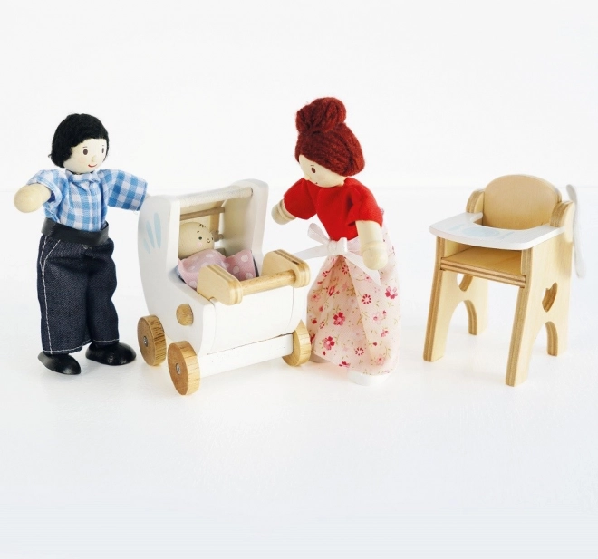 Il set bebè con accessori di LE TOY VAN è la scelta ideale per i piccoli caregiver. I bambini si divertiranno con un gioco realistico grazie al dolce passeggino, al seggiolone e al pratico set per la pappa. I dettagli dipinti a mano e i morbidi accessori tessili donano autenticità al giocattolo, mentre la realizzazione sicura assicura un divertimento senza pensieri.