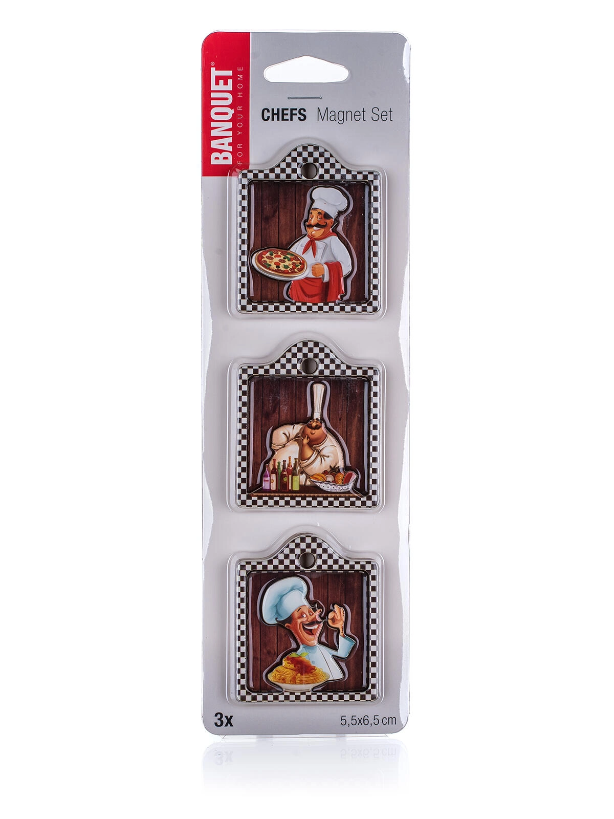 Un set elegante di tre magneti con il motivo Chefs abbellirà il tuo frigorifero e offrirà al contempo un utilizzo pratico – per fissare ricette, liste o messaggi. Nel mix universale di decorazioni si abbina facilmente allo stile di qualsiasi cucina.