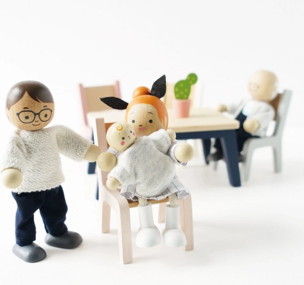 Il set di bambole in legno La Mia Famiglia è ideale per tutte le case e i prodotti del marchio Le Toy Van. Ogni personaggio è vestito con abbigliamento cucito a mano e ha arti mobili. Questo giocattolo è non solo bellissimo, ma anche educativo, aiutando i bambini a sviluppare abilità comunicative, sociali e creative.