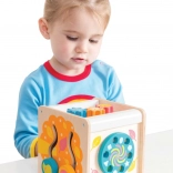 Il cubo motore Le Toy Van Petilou, gioioso ed educativo, in legno naturale con elementi colorati, supporta il gioco immaginativo e lo sviluppo delle abilità cognitive nei bambini. Realizzato in legno di caucciù sostenibile e dipinto con colori atossici, garantisce un giocattolo sicuro e ecologico.
