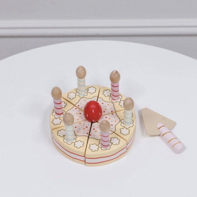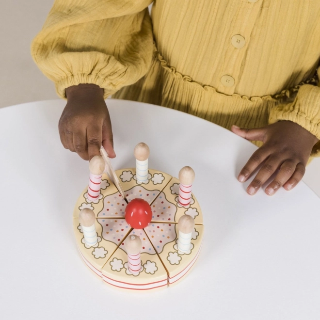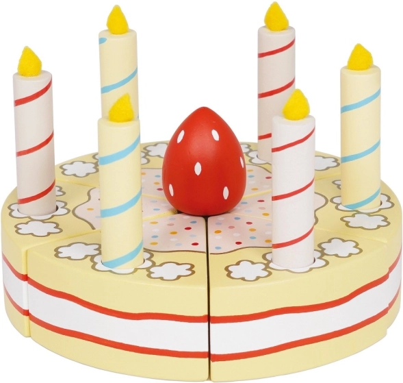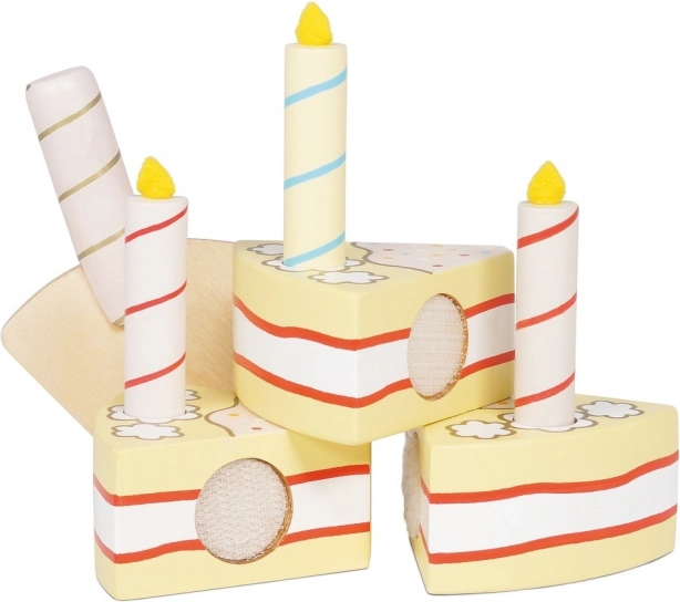 Sei porzioni unite dal velcro permettono ai bambini di tagliare, dividere e ricomporre facilmente la torta. Non mancano le candeline e le fette pronte da servire per un divertimento di compleanno completo.