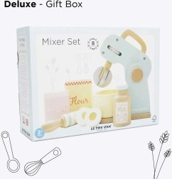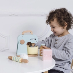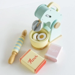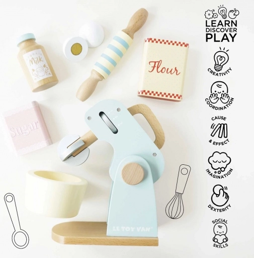 Il robot da cucina Le Toy Van dal look elegante offre ai bambini un’esperienza autentica di pasticceria nella loro cucina giocattolo. Grazie alla frusta rotante, al mattarello in legno e alla ciotola possono “preparare” torte, biscotti o plumcake. I colori pastello e il design rétro sono piacevoli alla vista, mentre la solida realizzazione in legno garantisce una lunga durata.