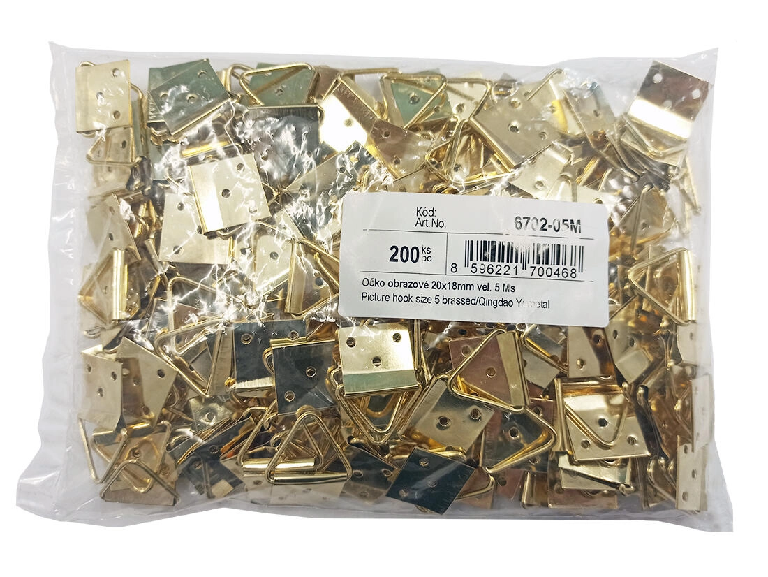Occhiello per quadri 20 × 18 mm nella misura 5 in resistente ottone è ideale per appendere quadri e fotografie alla parete. La pratica confezione da 200 pz facilita il montaggio di più cornici e garantisce un fissaggio solido e sicuro.
