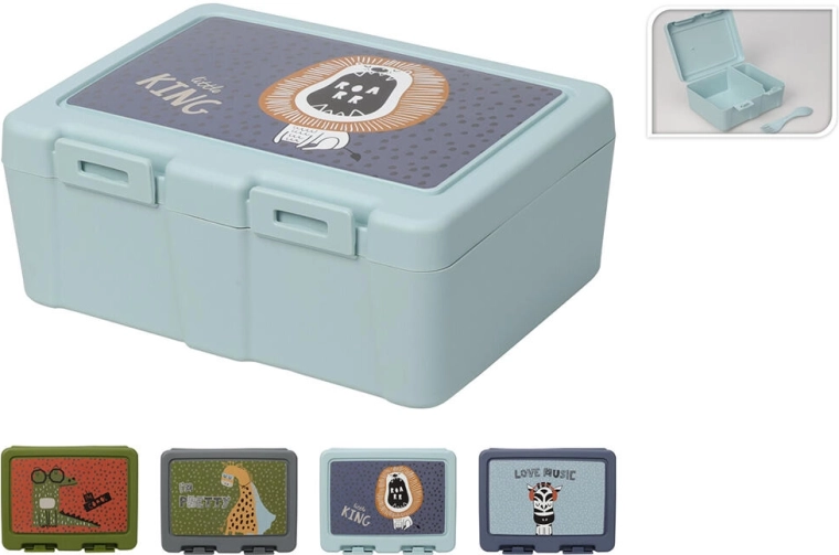 Pratico porta pranzo in plastica resistente per l’uso quotidiano a scuola, al lavoro e in gita. Grazie alla affidabile chiusura a scatto il contenuto rimane ben sigillato. Offre un mix di colori e decori, dimensioni compatte e manutenzione semplice.