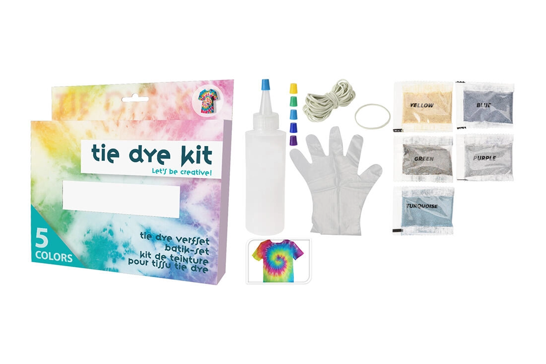 Scopri il divertimento creativo con questo set completo per tie-dye, che include 5 colori in polvere in un mix di tonalità e tutti gli accessori necessari per un’applicazione facile. Ideale per magliette, borse e altri tessuti – preparazione rapida, colori intensi e risultati creativi.