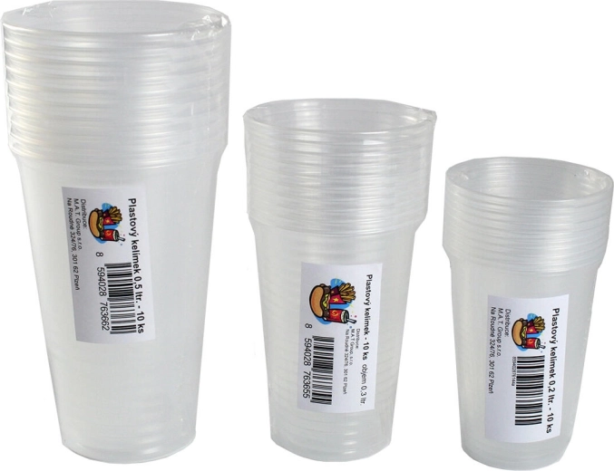 Questo set include 10 bicchieri di plastica trasparenti con capienza universale di 300 ml. Il design trasparente dona un aspetto pulito e permette di controllare facilmente il contenuto della bevanda. I bicchieri sono leggeri, poco ingombranti e ideali per servire rapidamente bevande fredde.